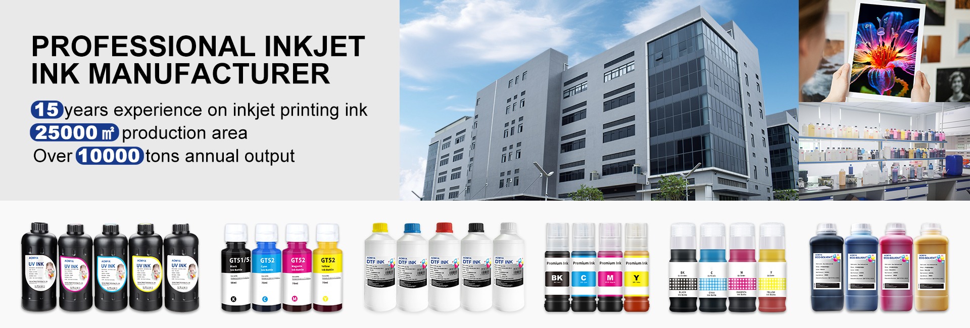 Produk utama: Tinta DTF, tinta UV, tinta sublimasi, tinta kantor, tinta pigmen